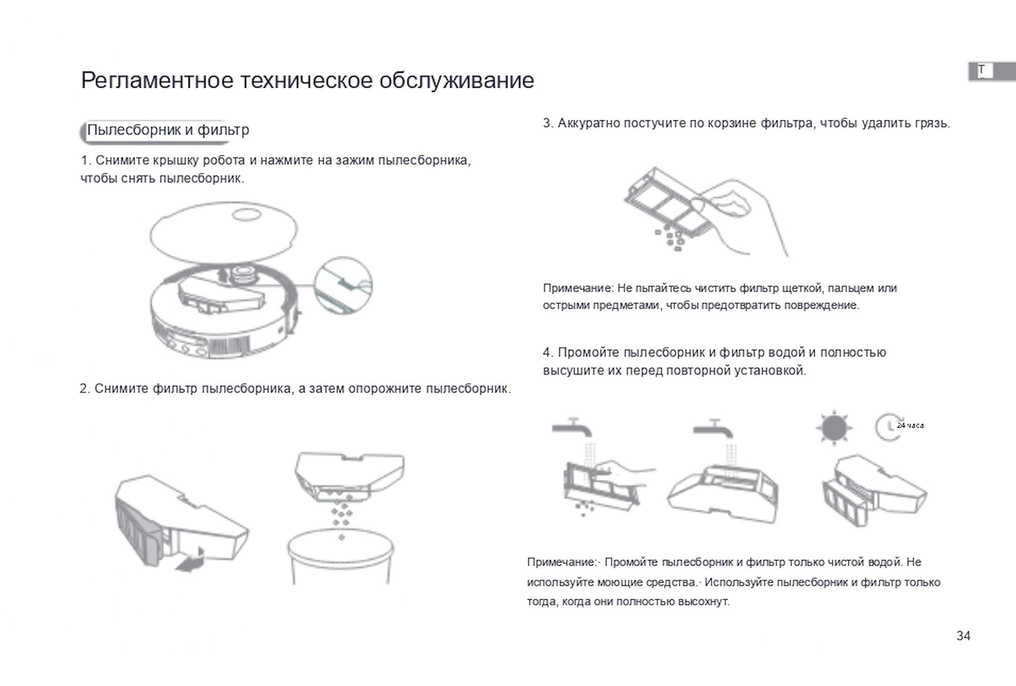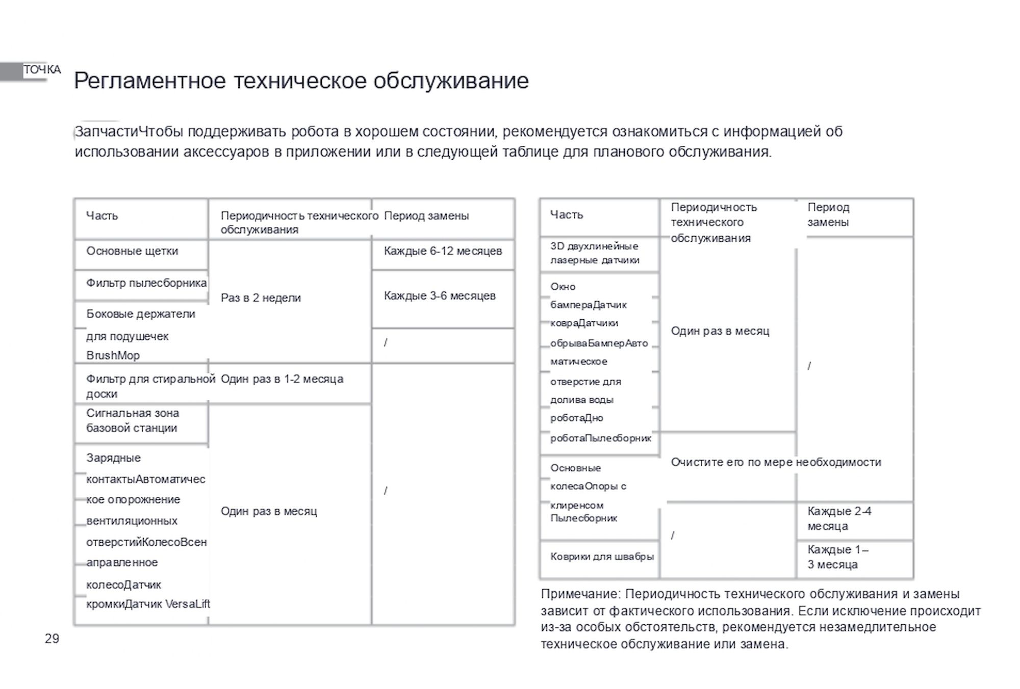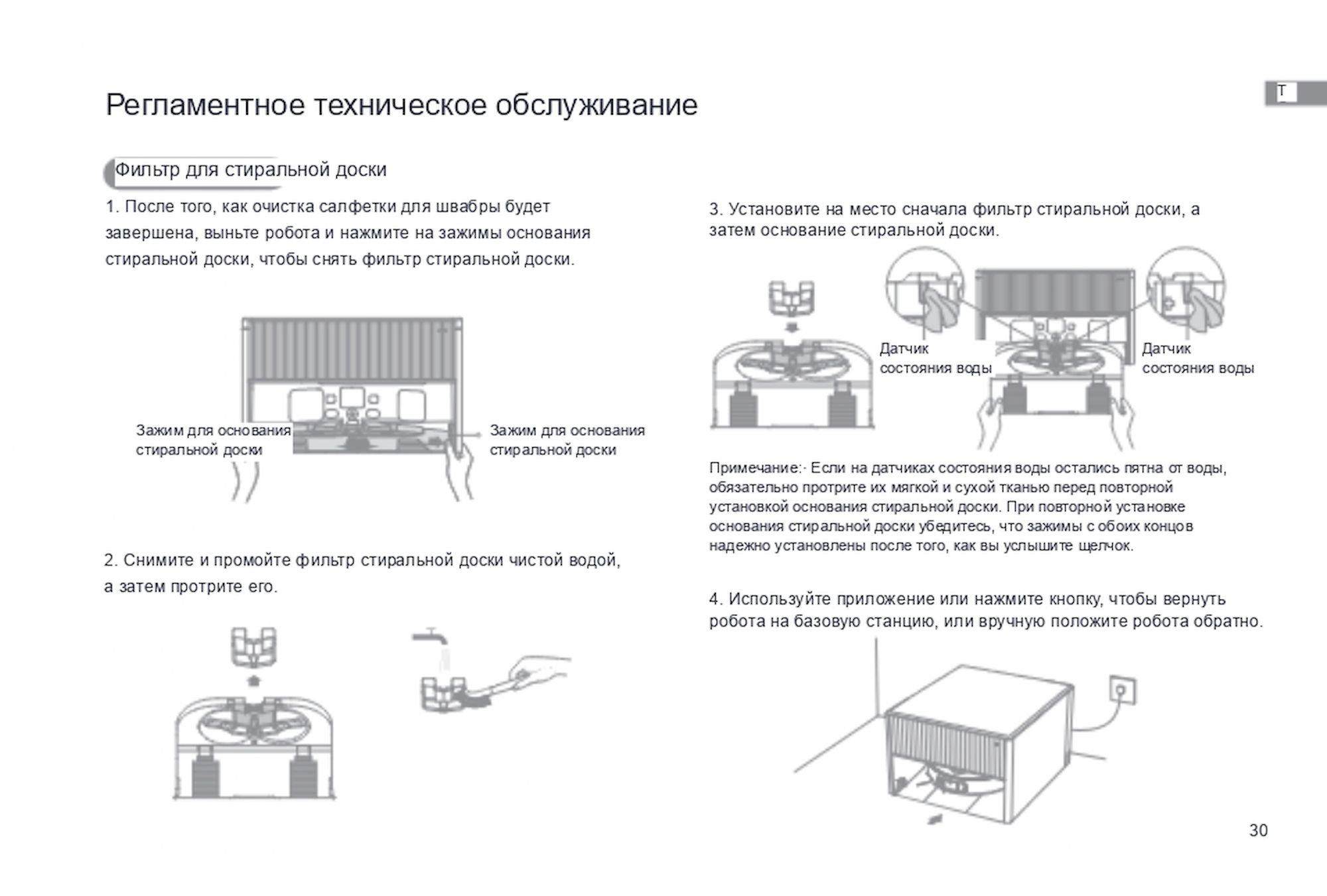 1. Не допускается игнорирование предупреждений о необходимости обслуживания, присылаемых роботом через приложение DREAME. Не своевременное обслуживание может привести к выходу робота из строя.
