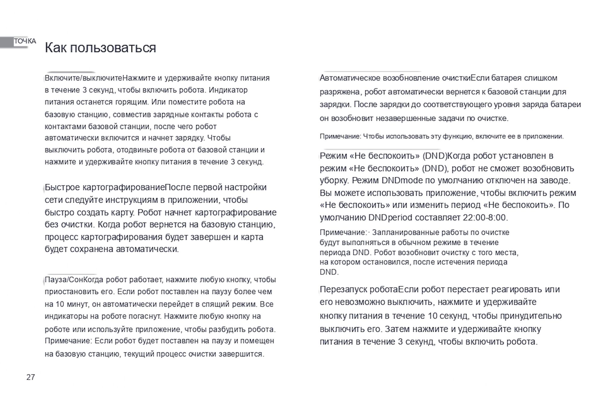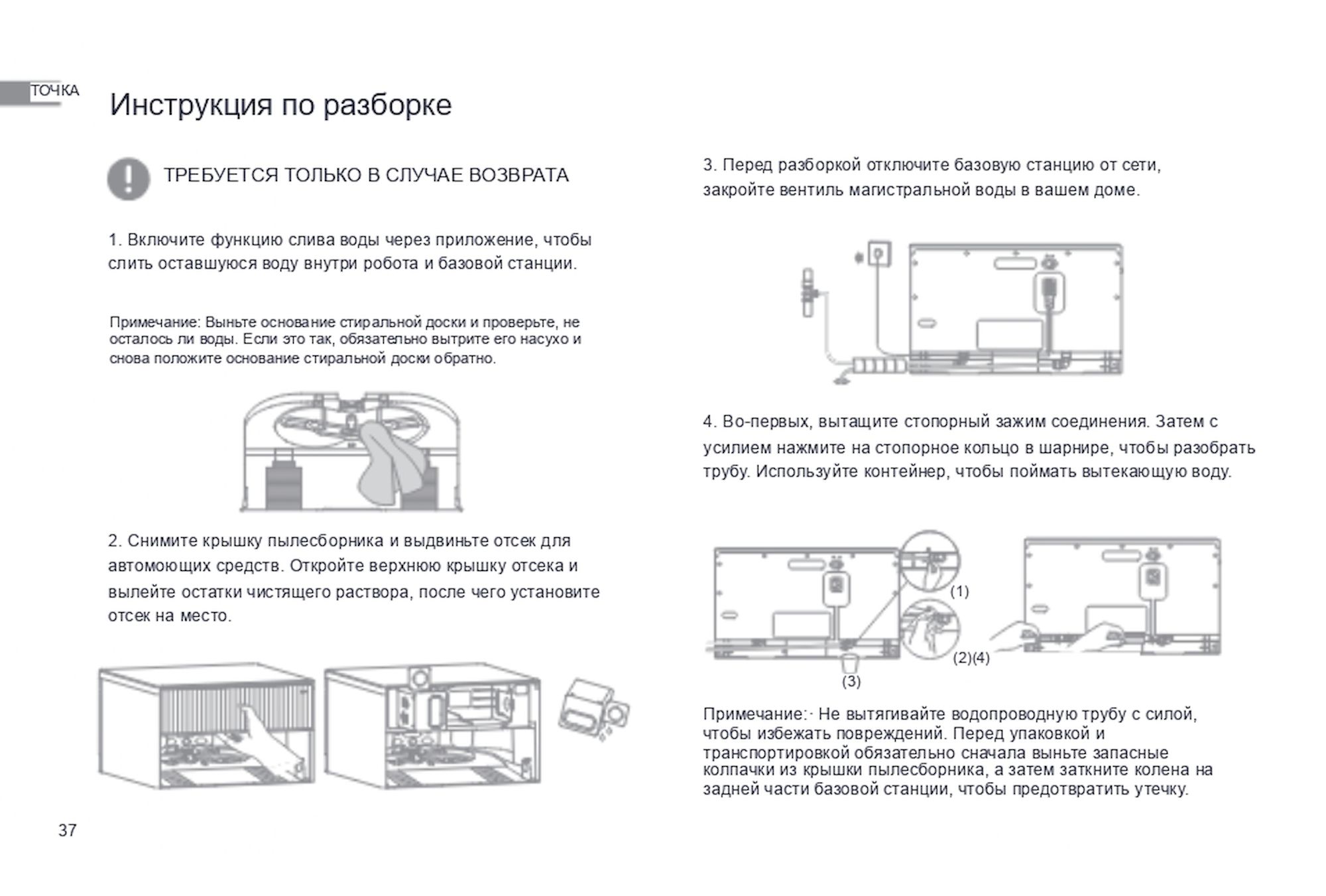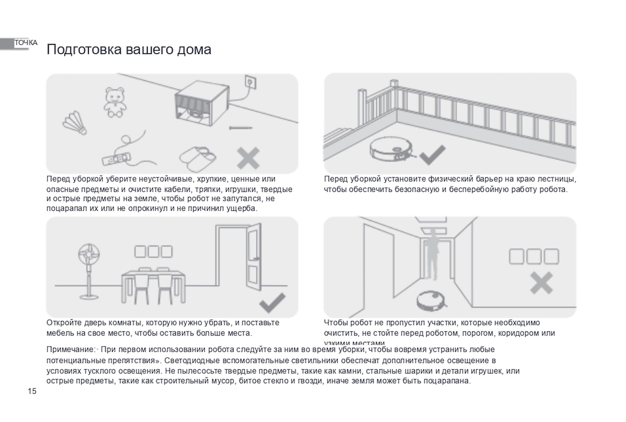 1. Не допускается игнорирование предупреждений о необходимости обслуживания, присылаемых роботом через приложение DREAME. Не своевременное обслуживание может привести к выходу робота из строя.