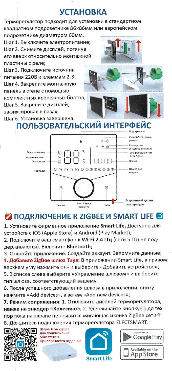 ВНИМАНИЕ! Термостаты бывают двух видов: работающие по WiFi и по протоколу ZigBee. Как правило мы используем протокол ZigBee, но встречаются и термостаты работающие по WiFi. Если не удалось подключить термостат по ZigBee, то попробуйте подключить его по WiFi. Управление термостатом ZigBee и WiFi не как не отличается. Подробная информация и видеоинструкции по работе с умным домом находятся в обучающей программе
