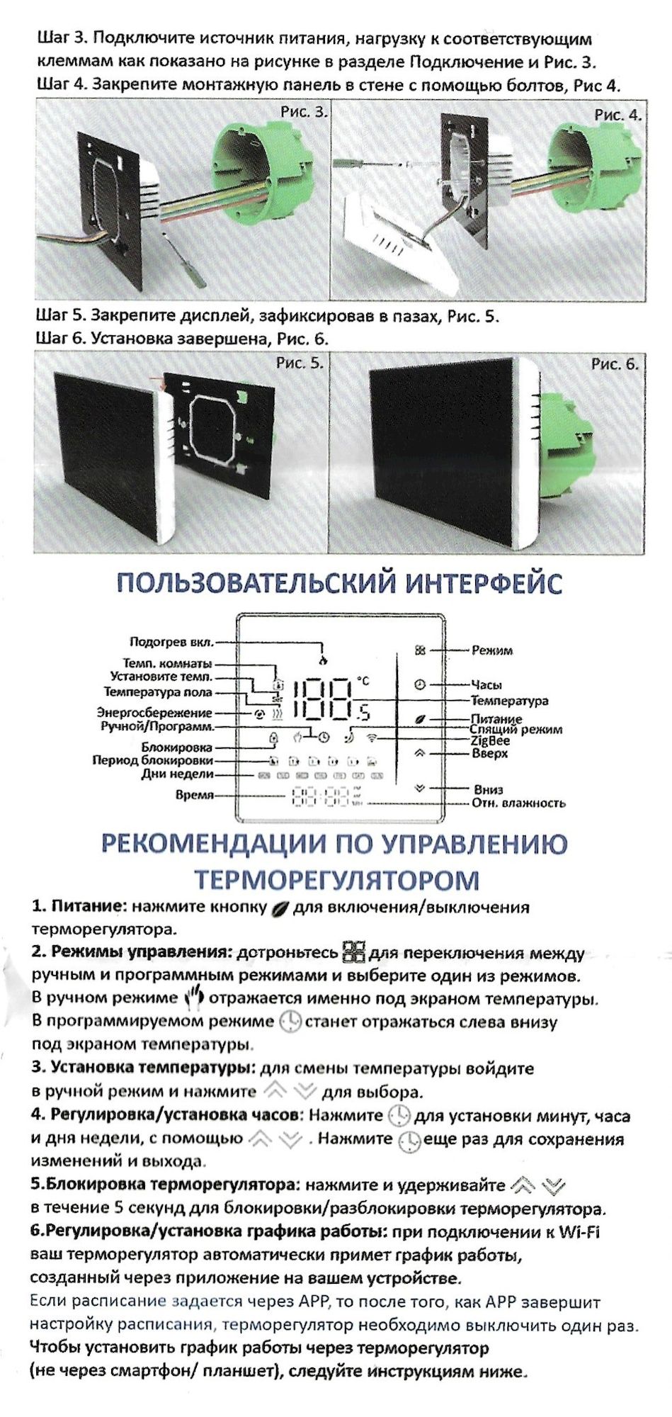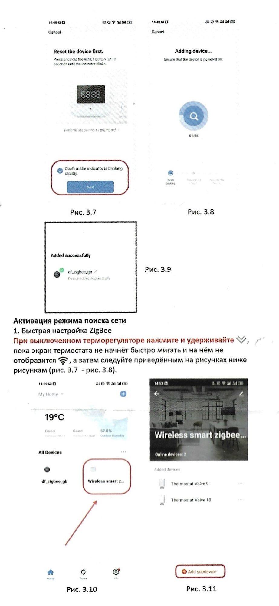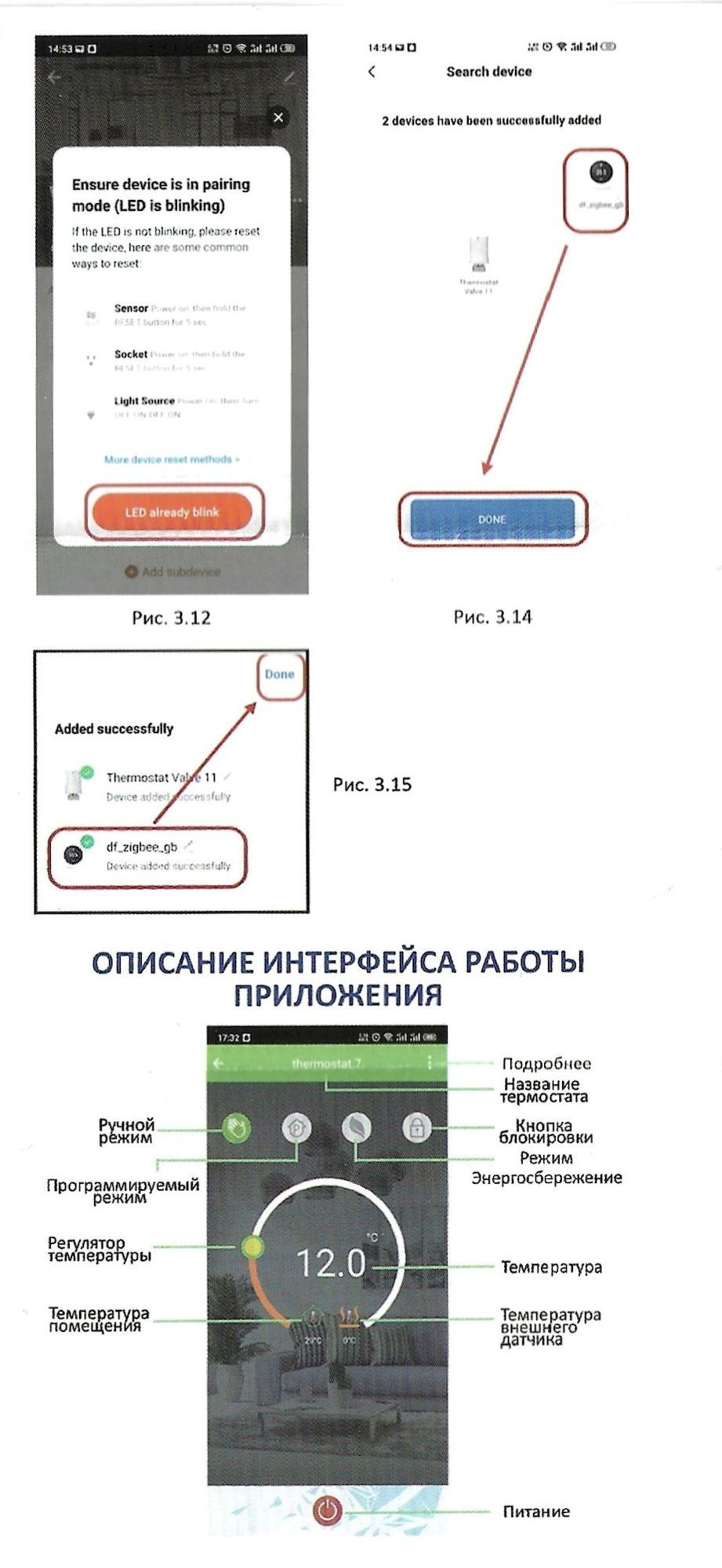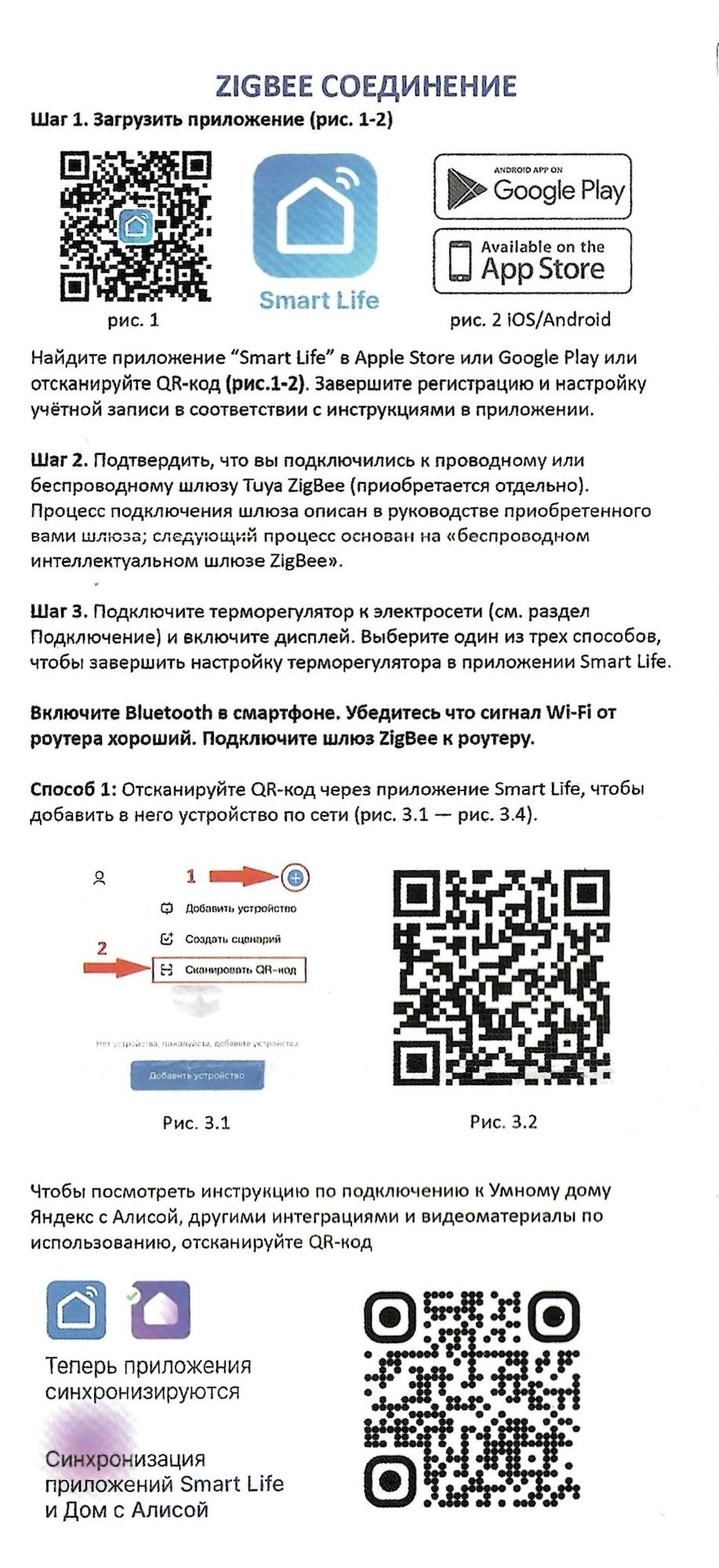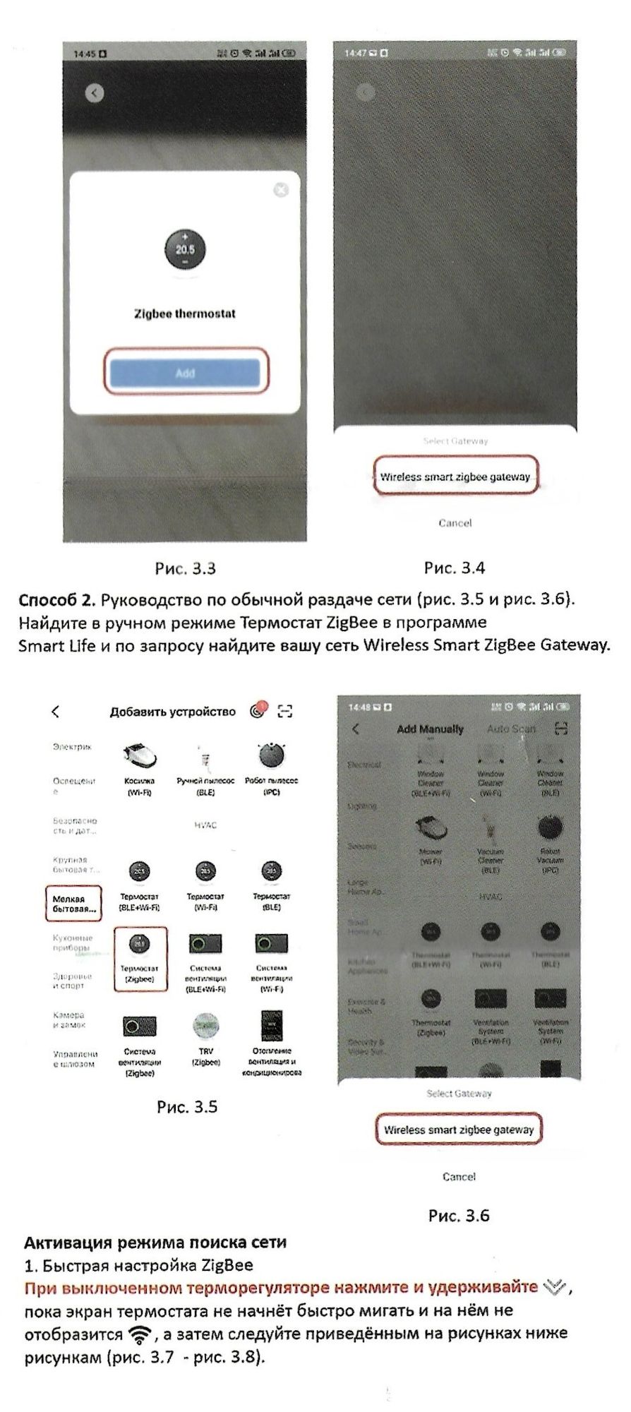 Данный термостат работает по протоколу ZigBee. К приложению для смартфона Smart Life, подключите шлюз (идет в комплекте к дому), зайдите в шлюз / выберите "добавить новое устройство" или значок "+". Перевидите термостат в режим сопряжения: выключите термостат нажав на среднюю кнопку справа (зеленый листочек), при выключенном термостате нажмите на правую нижнюю кнопку (стрелка вниз) и удерживайте ее пока не начнет мигать значок подключения к сети.