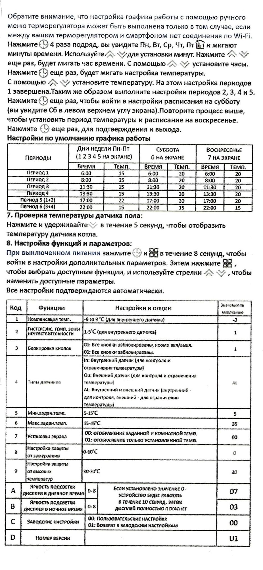 Не рекомендуем устанавливать гистерезис (разница в температуре при которой включается и отключается термостат) менее 1 градуса, это может привести к слишком частому переключению и как следствие выходу из строя термостата. В случае если гистерезис для теплых полов будет установлен на 0.5 градуса и термостат сгорит, это не будет являться гарантийным случаем.